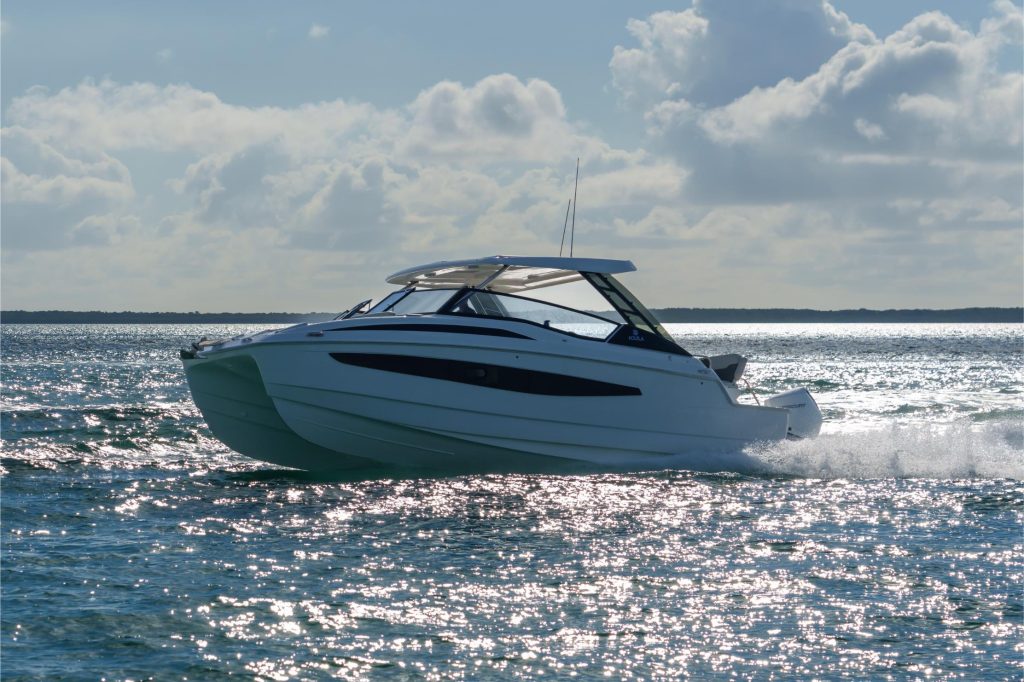 Tee jokaisesta päivästä viikonloppu. Aquila 32 Sport Power Catamaran vastaa horisontin kutsuun ketterällä suorituskyvyllä ja älykkäällä päiväveneilyn suunnittelulla – täydellisesti mitoitetussa paketissa.